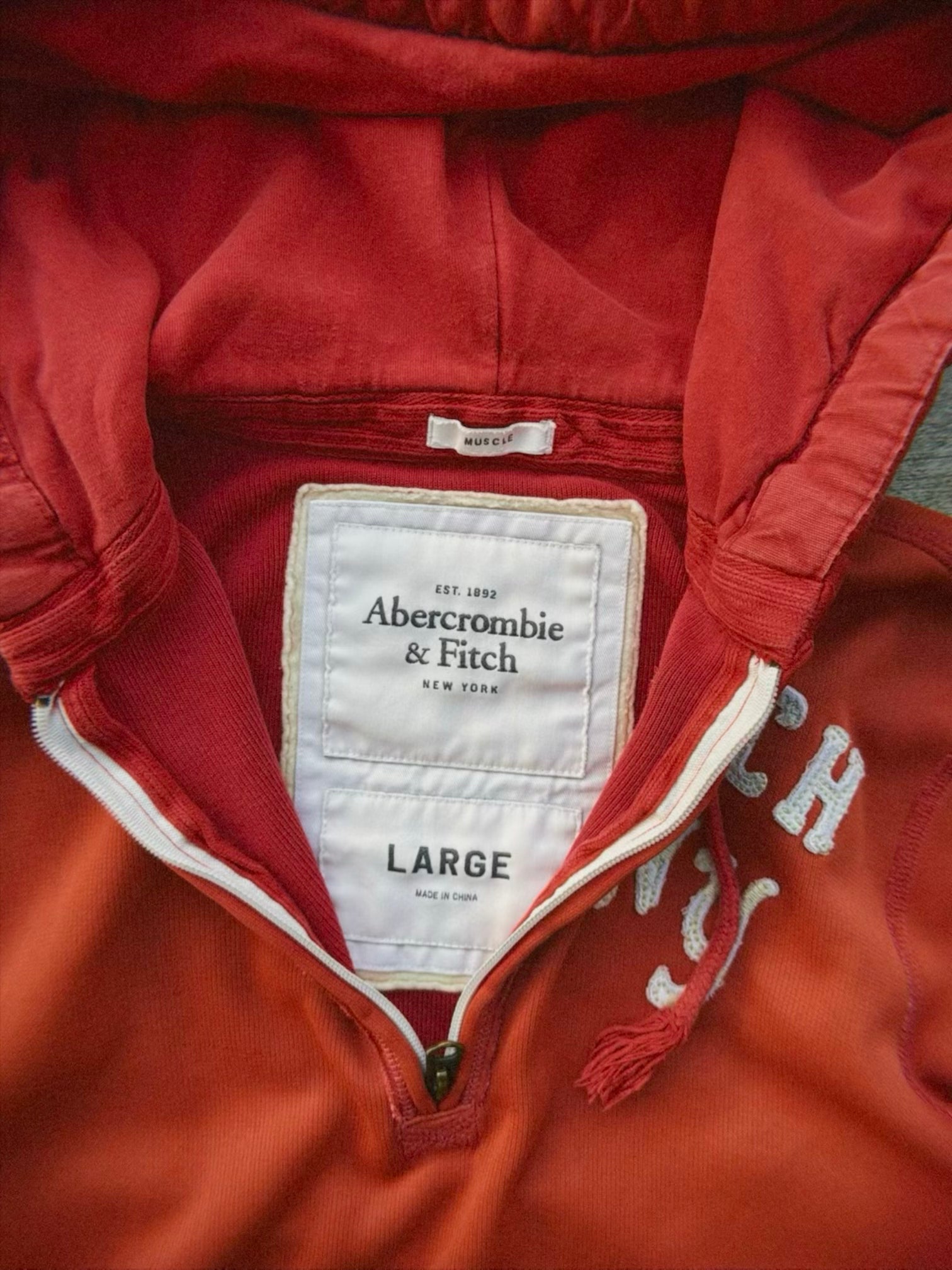 Vintage Abercrombie & Fitch quarter-zip hoodie featuring distinctive patches and unique design elements. Built from premium athletic material for comfort and durability, with a sleek slim fit. A refined take on classic sportswear.